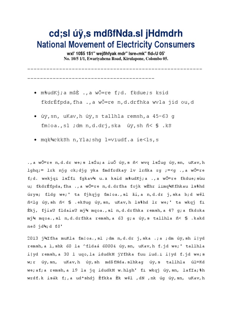 Cd Sl Uy S Mdssfnda Sl Jhdmdrh National Movement Of Electricity Consumers